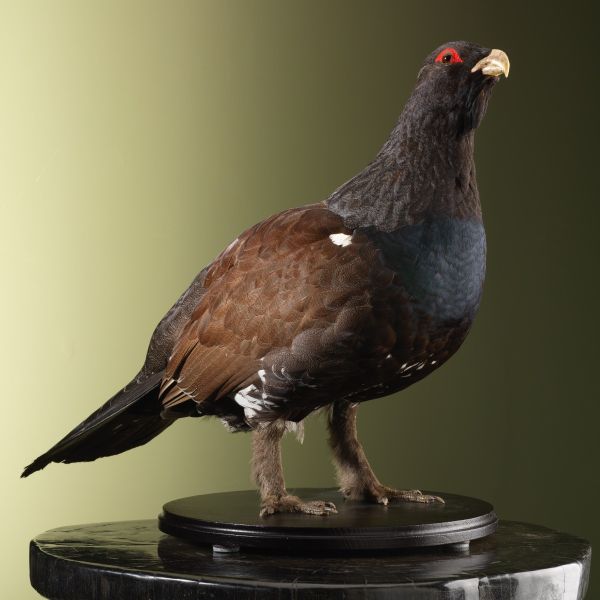 Opgezet Auerhoen M: Het opgezette Auerhoen (Tetrao urogallus) is een indrukwekkende vogel die behoort tot de familie van fazantachtigen. Dit majestueuze dier staat bekend om zijn imposante verschijning en prachtige verenkleed. Een leuk feitje over het Auerhoen is dat het mannetje een opvallende witte staart heeft, die hij gebruikt om indruk te maken op de vrouwtjes tijdens de baltsperiode. Taxidermie is de kunst van het prepareren en opzetten van dieren, zoals het opgezette Auerhoen. Taxidermy is het Engelse woord voor deze techniek, die al eeuwenlang wordt toegepast om dieren te conserveren en tentoon te stellen. Het opgezette Auerhoen is dan ook een prachtig voorbeeld van vakmanschap en natuurlijke schoonheid. Dit opgezette Auerhoen is een unieke toevoeging aan elk interieur of verzameling. Met zijn indrukwekkende grootte en gedetailleerde veren is het een eyecatcher die zeker de aandacht zal trekken. Of je nu een liefhebber bent van vogels, taxidermie of gewoon op zoek bent naar een bijzonder decoratiestuk, het opgezette Auerhoen zal zeker niet teleurstellen.